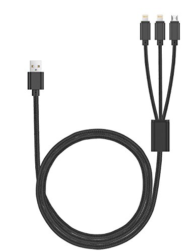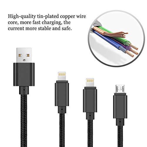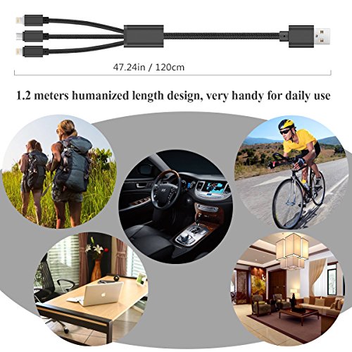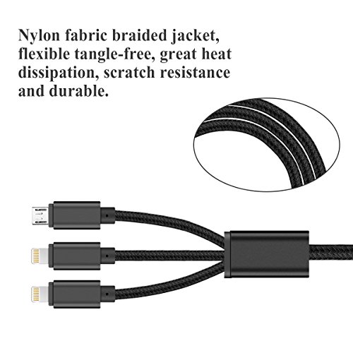 Multi USB Charging Cable,ELOVEN 4ft 3 in 1 Multiple USB Charger Cable Adapter Connector with 8 Pin Lighting/Micro USB Ports for iPhone 7,6,5,iPad 4,Air,Mini,Galaxy S7,S6,S4, and More (Black)