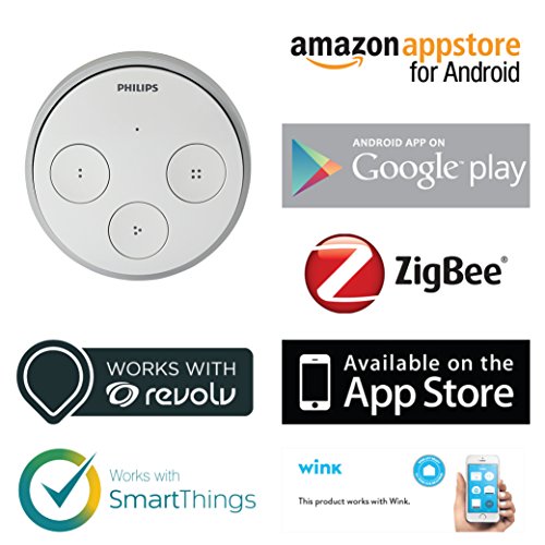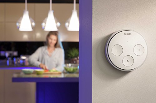 Change the way you control light at home with the Philips Hue Tap Switch. Remotely recall your four favorite Philips Hue light scenes at the press of a button. Select from your own scenes, scenes created by Philips, or program a button to switch all lights off. Requiring the Hue Bridge (sold separately) for the full Hue experience, this switch does not need batteries. It uses kinetic energy and is powered by your touch. Mount the Hue Tap anywhere with the included mounting plate and adhesive, or detach it and carry it with you as you move through your home. Add up to 12 other Hue accessories (sold separately) such as the Hue Dimmer Switch or Hue Motion Sensor. Control by voice with Amazon Alexa, Apple HomeKit, and Google Assistant. Connect it with your Nest or Samsung SmartThings system. This box includes a Hue Tap with wall plate and two-year warranty.Feature