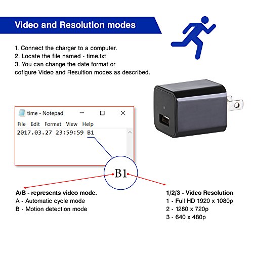 -. Binding : Electronics -. Brand : SanDine -. EAN : 7426822157594 -. Feature : ✔ VERSATILE AND MULTIFUNCTIONAL - Home surveillance system from SanDine supports crystal clear 30fps Full HD video - 1920p x 1080p. To increase the footage duration we also added support for smaller resolutions - 1280 x 720p or 720 x 480p. If that is not enough, you can now choose between regular or motion detection mode. / ✔ ENJOY YOUR PET'S SILLY TRICKS - that never happen when you are in the room. Set your spy hidden camera charger to motion activated mode; adjust the settings to record HD 1080p video and watch how your cat or dog has fun while you are working. / ✔ NEVER WORRY HOW THE NANNY TREATS YOUR KID - Can you trust a stranger with the most precious beings in your life? They are always nice at the interview but you will never know what really happens in your absence. Just plug the nanny cam recorder in the outlet and check the footage after work. You will instantly know if she/he can be trusted. / ✔ NEVER RUN OUT OF MEMORY - included in the spy cam kit is 16GB internal memory SD card. It can record up to 12 hours of video depending on the resolution. Once the storage runs out the device will automatically override the oldest files. You are guaranteed to have the latest hours of recorded video. / ✔ DISCREET AND CONCEALED - your mini Spy Camera looks and behaves exactly as a smartphone charger, no one will suspect the hidden function to record HD Video footage. It can also record while at the same time charging your phone. -. Label : SanDine -. Manufacturer : SanDine -. Model : SC-5229 -. MPN : SD.Hidden.001.01 -. PackageQuantity : 1 -. PartNumber : SD.Hidden.001.01 -. ProductGroup : Photography -. ProductTypeName : SURVEILANCE_SYSTEMS -. Publisher : SanDine -. Studio : SanDine -. Title : Mini Spy Camera - Hidden Nanny Cam - Usb Camera Wall Charger - Full HD 1080P - Security Cam to Monitor Home Activity - Up to 8 Hours Loop Recorded Video - Video Only Surveillance Cam - 16GB by Sandine