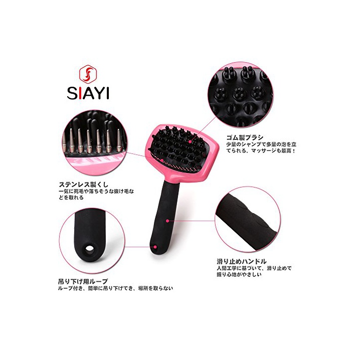 원본상품명:SIAYI(しあい)ペット ブラシ シャンプ用ブラシ 泡立て ペット用品 ノミ取りくし お手入れくし マッサ?ジ 毛繕い 機能維持 合成ゴム 輪付き ステンレス櫛付き 大型犬 猫??