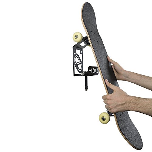 Studio : MEOLLO Publisher : MEOLLO Product Description Wall mount for skateboard suitable for use indoors and outdoors. Its steel fabrication and baked paint allows it to perfectly withstand adverse weather conditions without oxidation and with great durability. At the same time, its exclusive design allows a perfect integration with the home decoration, offering the opportunity to present very gracefully the sports equipment. Its small size allows a perfect balance between functionality and visual presence. - Ease of assembly: it is formed by a single piece of steel. The support is anchored to the wall by screws, allowing a solid grip and a high load capacity.- None of the 4 wheels dirty wall. - Easy wall mounting. - Reduced design. - Perfect for skateboard storage. - Designed for all skateboards sizes. - Use in your garage,living room, bedroom, etc. - Perfect balance between functionality and design. Made 100% in Europe. Quality and love of well done objects: MEOLLO 0
