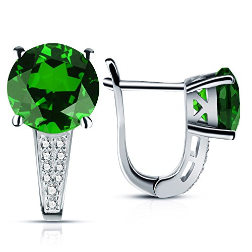 Add some glitz to your look with these stunning 925 sterling silver earrings. Featuring a mesmerizing created emerald accompanied by a cluster of CZ simulated diamonds, these earrings are a wonderful gift for the woman who has everything!
