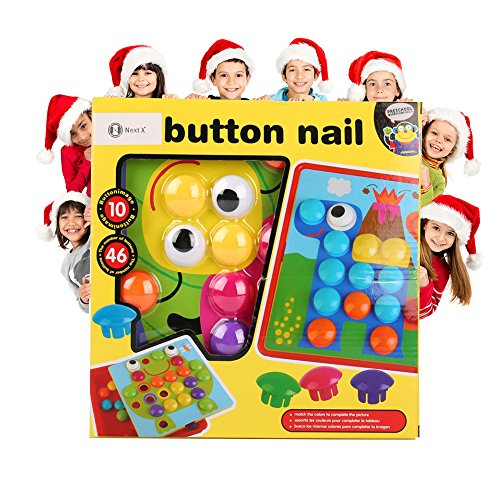 Studio : NextX Publisher : NextX Binding : Toy Product Description NextX Button Art colorful Mushrooms nail for kids to have fun! NextX Mushrooms nail is designed for preschoolers to develop hand-eye coordination, fine motor skills and creative thinking. It also comes with a wide storage tray to keep everything together. All your child has to do is match and snap the chunky buttons to complete the pictures. The pictures include a frog, bird, house, tree, truck, and more, all perfect for little ones learning how to use their creativity. Pick everything up and place back into the wide storage tray for a fast and easy cleanup.