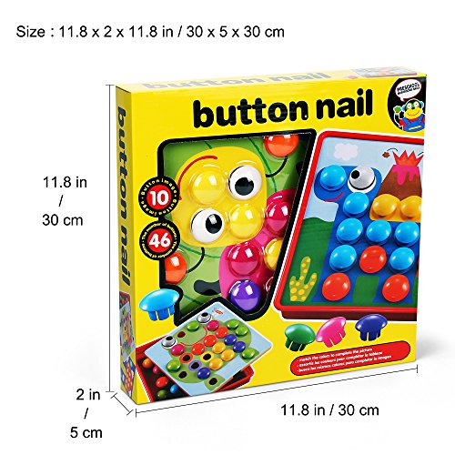Features: Name:NextX Button Art Mushrooms Nail Material: High Qutality ABS plastic Size:12 x 12 x 12.2 inches 10 pictures:9.6 x 9.6 in/24.3 x24.3 cm Includes:46 colorful Buttons; 10 pictures;1 storage tray Why choose NextX Button Art Mushrooms Nail? 46 Buttons and 10 Pictures for Hours of Artistic Fun Develops hand-eye coordination and fine motor skills Fosters child's creativity The bright color can reflex image surface Interesting texture can arouse baby curiosity Learn to recognize and baby classification shape and color Convenient storage tray holds all pieces After-sale service: For any problem of NextX Mushrooms Nail ,please feel free to contact us directly. We will provide lifetime service. Recommended for children 2 years of age and older. 0