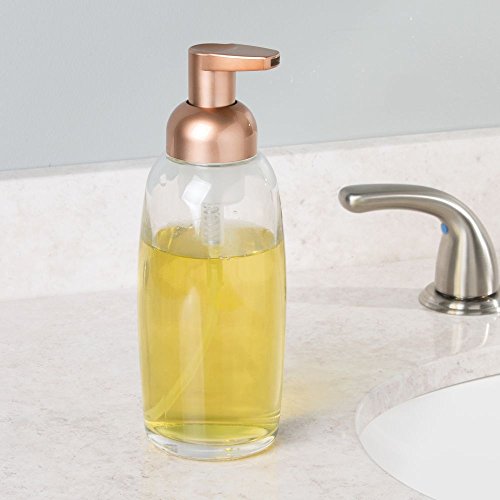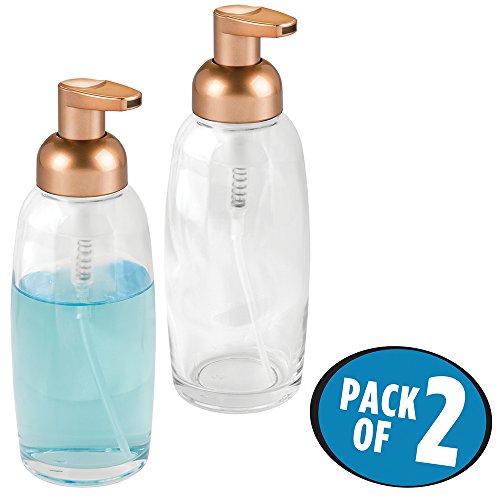 mDesign Glass Foaming Soap Dispenser Pump for Kitchen & Bathroom Vanities - Pack of 2, Clear/Copper