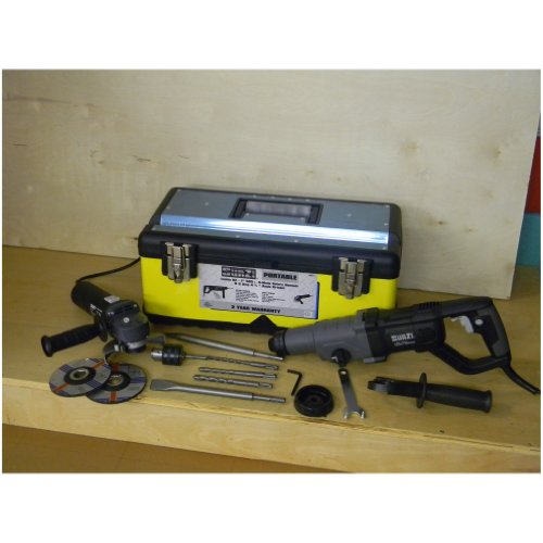 SunZI PT05625-11 1-Inch SDS 4-Mode Rotary Hammer and 4-1/2-Inch Angle Grinder w/ Tool Box and 5 Bits