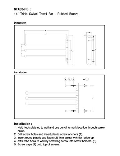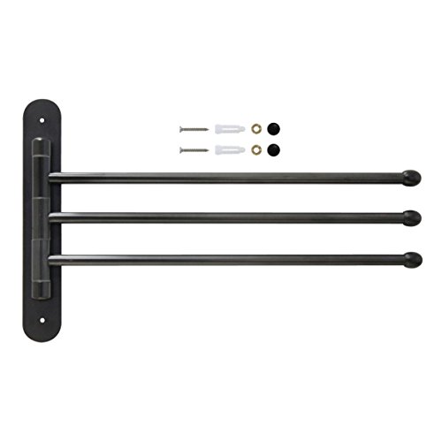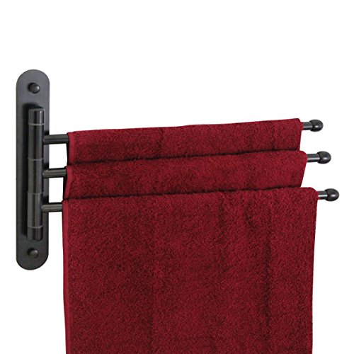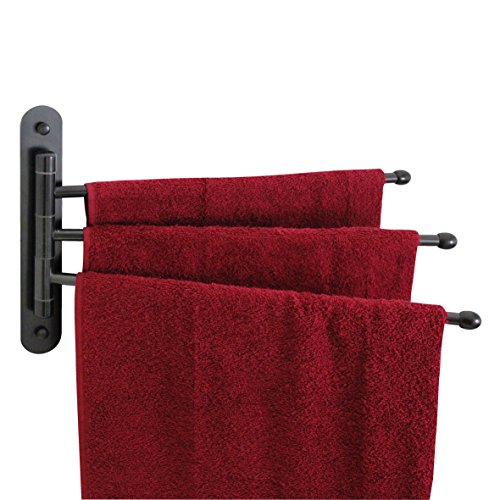 15” Triple Swing Towel Bar, Extra Long = 15” Arms, Extra Tall = 10” Plate. Solid ONE PIECE, No Assembly Required.