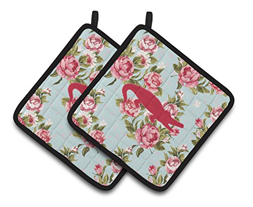 Caroline's Treasures Alligator Shabby Chic Blue Roses Pair of Pot Holders BB1120-RS-BU-PTHD, 7.5HX7.5W, Multicolor