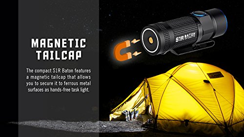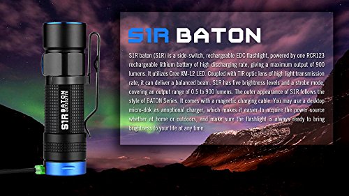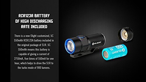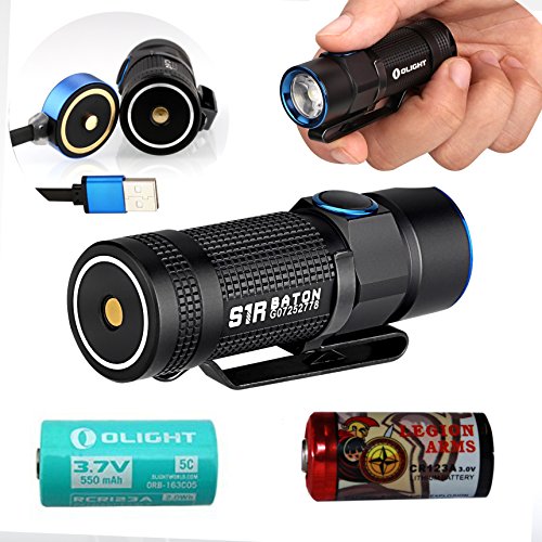 Olight S1R Baton S1 rechargeable 900 Lumen LED Flashlight Compact EDC with customized RCR123 Li-ion battery, flex magnetic USB charging cable and LegionArms CR123A Lithium Battery