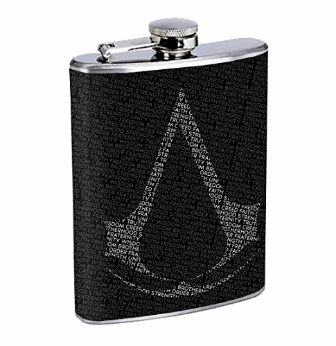 -. Title : Assassins 8oz Stainless Steel Flask Drinking Whiskey