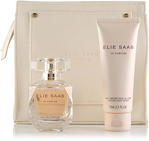 Elie Saab Eau De Perfume Set of 1.6 oz. EDP Spray, 2.5 oz. Body Lotion, Ivory Beauty Pouch