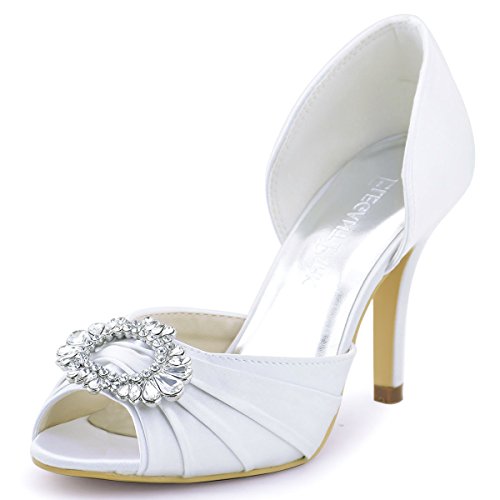 -. Binding : Apparel -. Brand : Elegantpark -. Department : womens -. Feature : Heel Height:3.5" / Size: EU35-EU42/US4-US11(Please check the sizing info before you purchase) / Style: Women Peep Toe Satin Pumps / Embellishment:Rhinestones -. ProductGroup : Shoes -. ProductTypeName : SHOES -. Title : ElegantPark A2136 Women Satin Party High Heels Peep Toe Rhinestones Buckle Pleated Bridal Wedding Shoes
