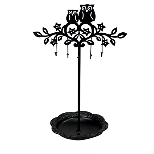 Cut Out Owl Tree Jewelry Stand with Tray Black Silhouette