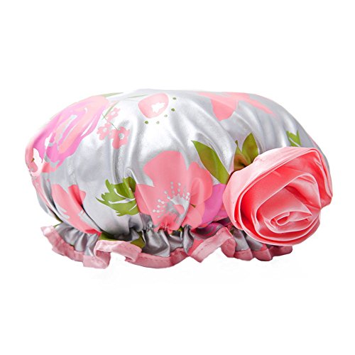 Bella Il Fiore Bath Diva Shower Cap Gray Floral with a Pink Flower