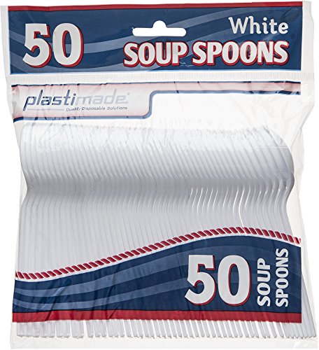 Plastimade Cutlery Heavy Weight White Plastic Soup Spoons 50 Soup Spoons In A Package Pack of 1