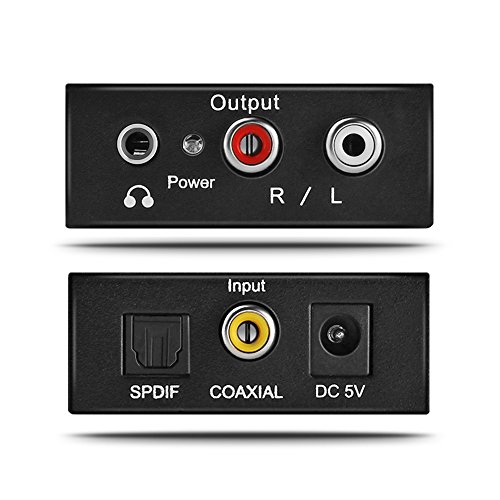 TNP Digital to Analog Audio Converter Box Adapter - Converts Optical Coaxial or SPDIF Toslink Signal to Stereo RCA L/R (Red/White) Sound Signal or 3.5mm AUX Auxiliary Jack Plug