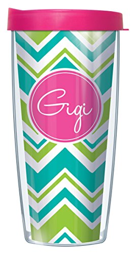 Gigi On Teal Lime Varied Chevron 16 Oz Traveler Tumbler Mug with Lid