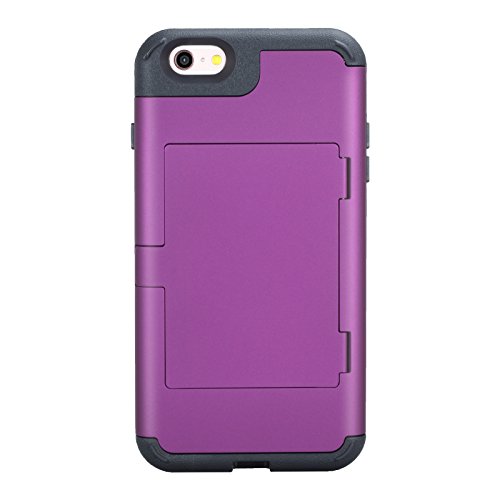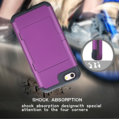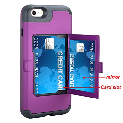 Shockproof iPhone 6 Plus Case,iPhone 6S Plus Case Hybrid Purple,Gostyle 3 in 1 Hard PC + Soft Rubber Heavy Duty Drop Protection Armor Protective Case with Wallet Card Holder and Hidden Makeup Mirror