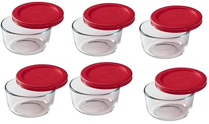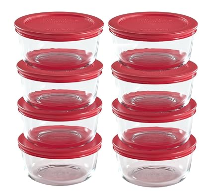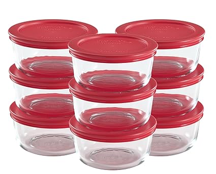 [Product Information]- Set includes: (4) 1-cup Round Dishes with Red Plastic Lids