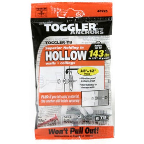 TOGGLER Toggle TB Residential Drywall Anchor with Screws, Polypropylene, Made in US, 3/8" to 1/2" Grip Range, For #6 to #14 Fastener Sizes (Pack of 5)
