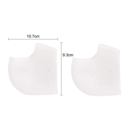 Specification: Item: Gel?Heel?Protectors Material:Silicone gel Color:White Size: 10.7*9.3cm(one size fits all) Net Weight:70g/Pair Function:Pain-relief ,Moisturizing