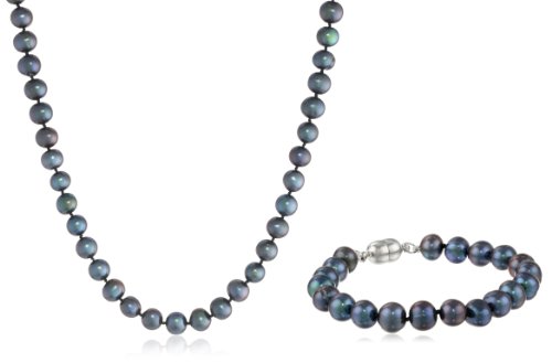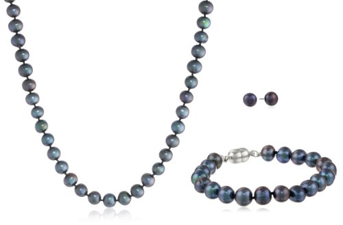 Strands of lustrous freshwater cultured pearls create this elegant necklace bracelet and stud earring set. Choose from white or peacock-colored pearls.