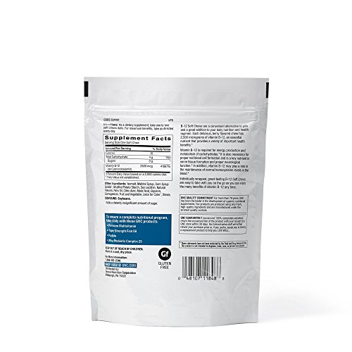-. Feature : B-12 Soft Chews Are A Convenient Alternative To Pills And A Great Addition To Your Daily Nutrition And Health Regimen. Each Delicious, Berry- Flavored Chew Provides 2,500 Micrograms Of Vitamin B-12, An Essential Nutrient That Provides A Variety Of Important Health Benefits. / Vitamin B-12 Is Required For Energy Production And Metabolism Of Carbohydrates.It Is Also Necessary For Proper Red Blood Cell Formation And Proper Neurological Function.In Addition, Vitamin B-12 May Play A Role In The Maintenance Of Normal Homocysteine Levels In The Blood. / Individually Wrapped, Great-Tasting B-12 Soft Chews Are Easy To Take With You On The Go So You Can Enjoy The Many Benefits Of Vitamin B-12 Any Time.