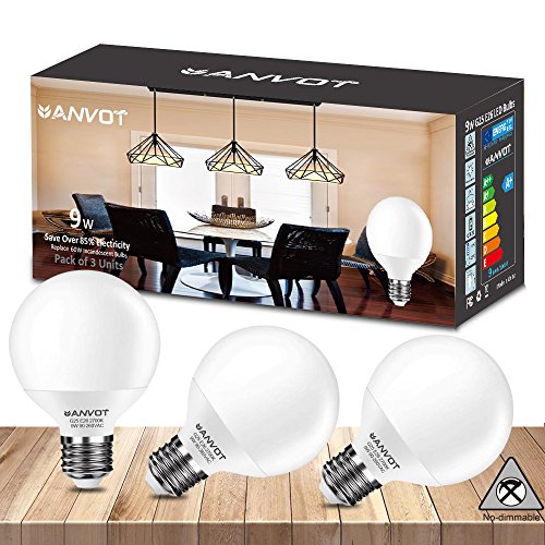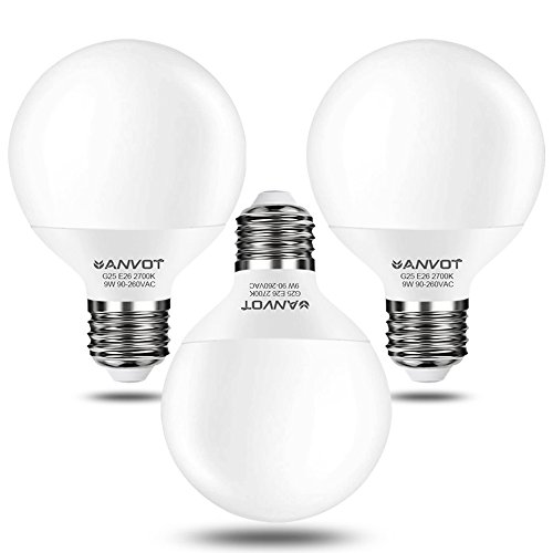 ANVOT 3 Pack 9W G25 E26 LED Bulbs, 60W-75W Incandescent Bulb Equivalent, Non-Dimmable, 1060lm, Warm White, 2700K, 270 Degree Beam Angle, Globe Vanity Bulbs