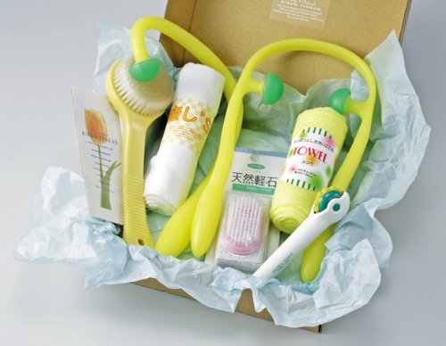 《하산》DE굿×1,《오시》TE굿×1,《즈보로라》×1,바디 브러시×1,바디 타올×1,천연 경석(브러시부)×1,게스트 타올×1