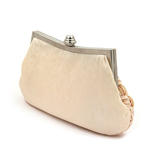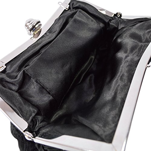 -. Feature : Elegant glittery satin fabric clutch evening bag with sparkling rhinestone frame / Fabric lining. Crystal ball clasp top closure. Interior wall pocket. / 2 sizes of removable hideaway chain strap: 8" drop and 23" drop / 9" (L) x 5" (H) x 1.5" (W) / High quality with different vibrant colors available