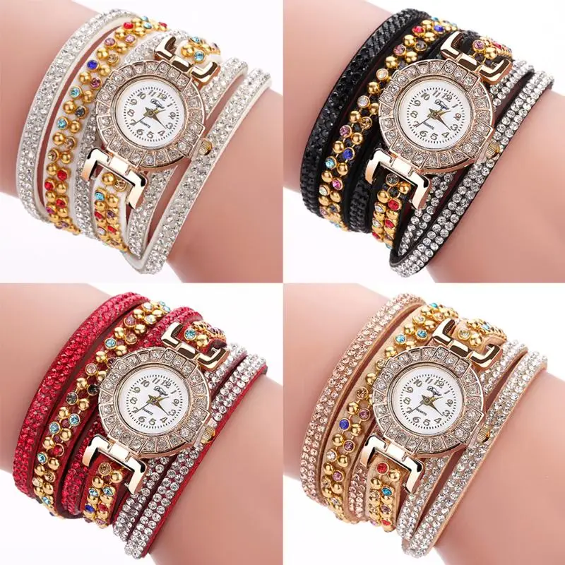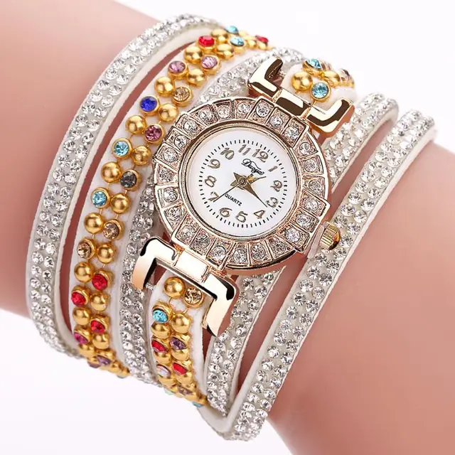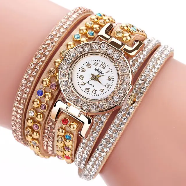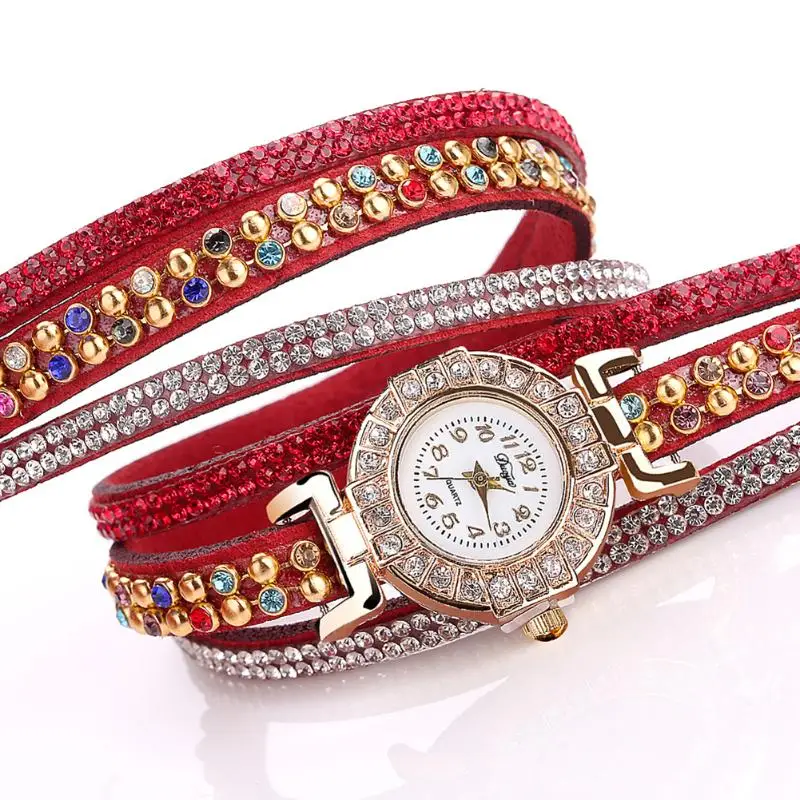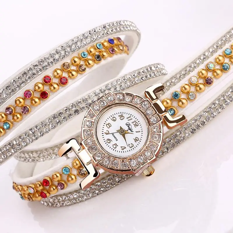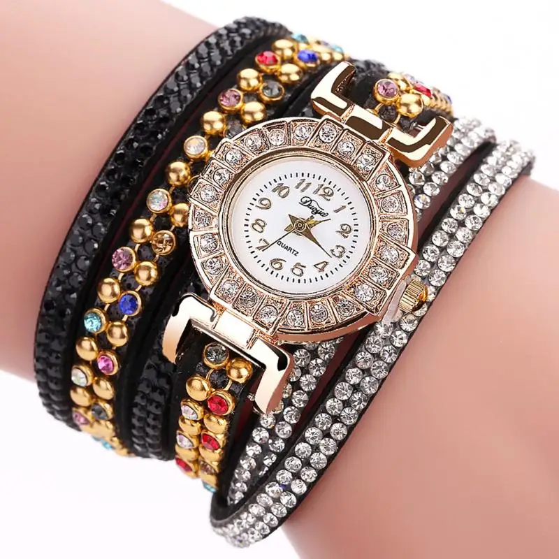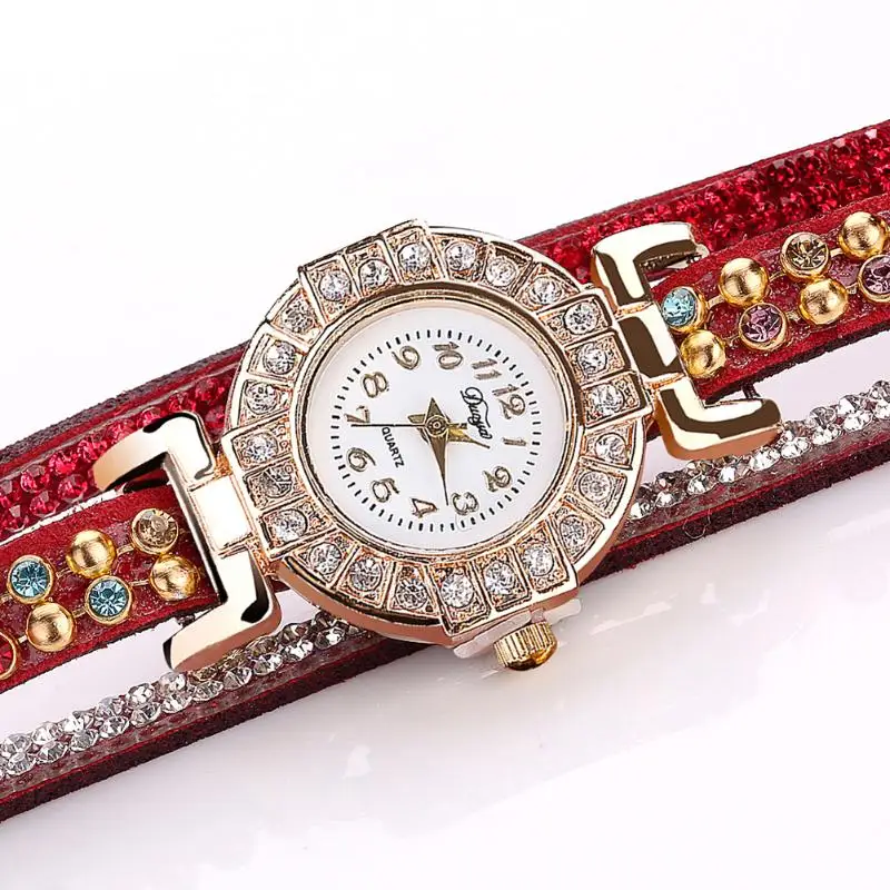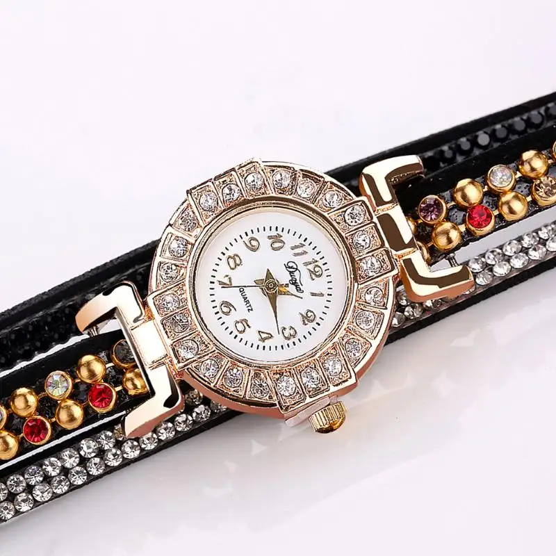 | [해외] Duoya 캐주얼 석영 여성 라인 석 팔찌 멀티 레이어 가죽 시계 레이디 선물 Relogio Feminino 선물 도매 saat |