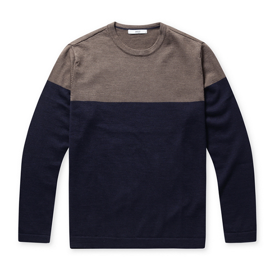 - 투톤 블럭 디자인으로 모던한 남성 니트.