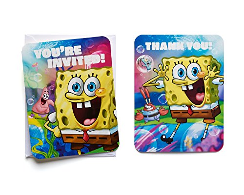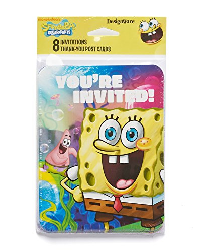 Studio : American Greetings- Toys Publisher : American Greetings- Toys Binding : Toy Product Description Need invitations for your kid's SpongeBob SquarePants themed birthday party? Want thank thank-you notes to send out to guests after the Bikini Bottom bash? This SpongeBob SquarePants invite and thank- you combo pack has everything you need! The package includes eight invitations with white envelopes, eight thank-you post cards, and a handy checklist to keep track of guests. Both the invitations and thank- you notes feature everyone's favorite sponge in a colorful underwater scene!. 0