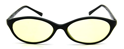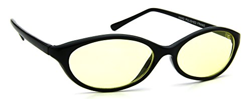 Retro Womens Sunglasses Black Plastic Frame Oval Yellow Lens 100% UV400
