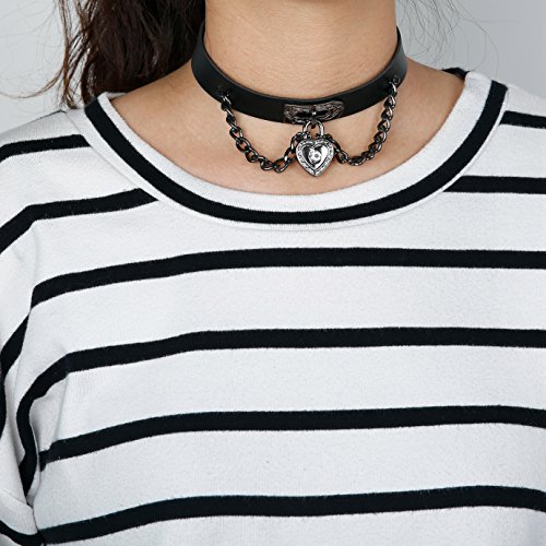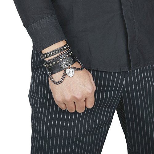 -. Title : Finrezio Unisex Punk Rock Leather Bracelet and Heart Choker Collar Necklace Set for Women Men