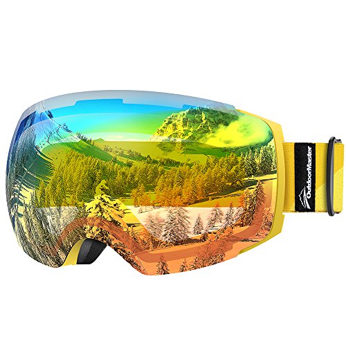 -. Feature : PERFORMANCE SKI GOGGLES WITH FRAMELESS DESIGN: Snow Goggles for Men, Women & Youth. The big, spherical, frameless lens provides a truly unobstructed & clear view of the slopes. Designed for ultimate performance & comfort. / INTERCHANGEABLE LENS SYSTEM: The Interchangeable lens system lets you swap lenses according to the weather and personal preference. All our lenses are treated anti-fog and anti-scratch coating and offers 100% UV protection. / WEAR OVER GLASSES (OTG): These Goggles features a OTG (over the glasses) design that lets you wear your prescription glasses under the goggles. Because good vision is important! / HELMET COMPATIBLE: The extra long elastic strap are attached to outriggers that pivot ensure great helmet integration. Works with all ski & snowboard helmets. / WHAT YOU GET: 1 x OutdoorMaster Goggles PRO, 1 x Protective Case, 1 x Carrying Pouch, and our customer-favorite 6 months warranty and friendly customer service!