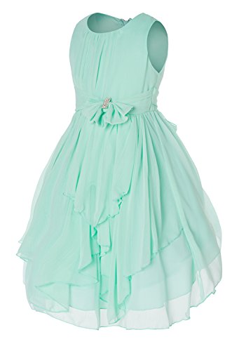 Simple yet elegant looking Yoru Chiffon dress with Asymmetric Ruffled Skirt and Jeweled bow waistline accent.