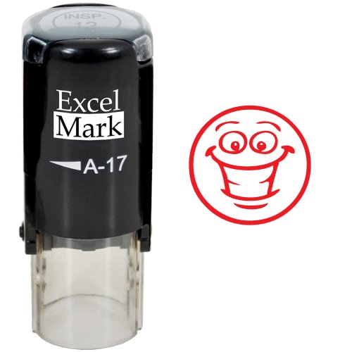 -. Binding : Office Product -. Brand : ExcelMark -. Feature : Self-Inking Stamp in RED ink / Clear base to easily align impressions / Features a two-sided ink pad that doubles the number of impressions and the useful life of the pad / Thousands of impressions before re-inking is necessary / Impression Area: 5/8" diameter -. Label : Discount Rubber Stamps -. Manufacturer : Discount Rubber Stamps -. Model : A17 -. MPN : A17-TCH3 -. PackageQuantity : 1 -. PartNumber : A17-TCH3 -. ProductGroup : Office Product -. ProductTypeName : OFFICE_PRODUCTS -. Publisher : Discount Rubber Stamps -. Studio : Discount Rubber Stamps -. Title : Round Teacher Stamp - SMILEY FACE 3 - Red Ink