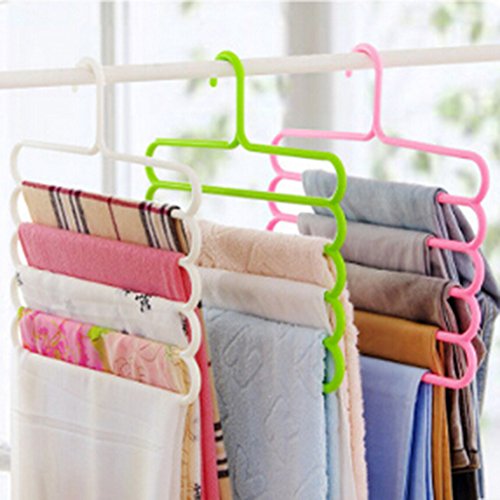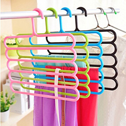 -. Title : 5pcs/set of Multi-Purpose 5 Layers Pants Hanger Trousers Tie Towel Rack Premium Quality Space Saving Plastic Hanger Plastic Clothing Hangers for clothes Pants Trousers Random Color