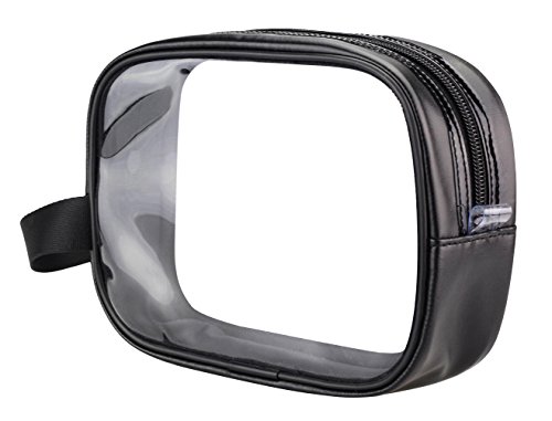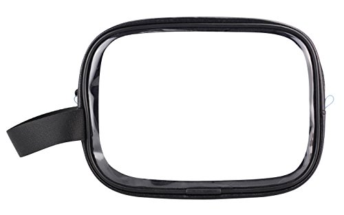 BeeChamp Clear PVC Travel Makeups Cosmetics Zipper Pouch Toiletry Accessories Bag w/ Hand Strap, Black