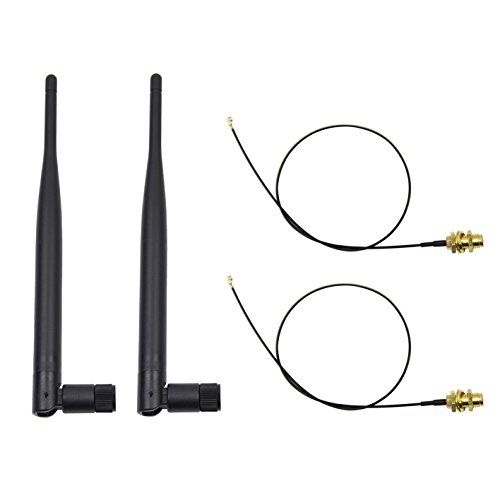 Highfine 2 x 6dBi 2.4GHz 5GHz Dual Band WiFi RP-SMA Antenna + 2 x 35cm U.fl / IPEX Cable for Wireless Routers Mini PCIe Cards Network Extension Bulkhead Pigtail PCI WiFi WAN Repeater