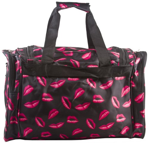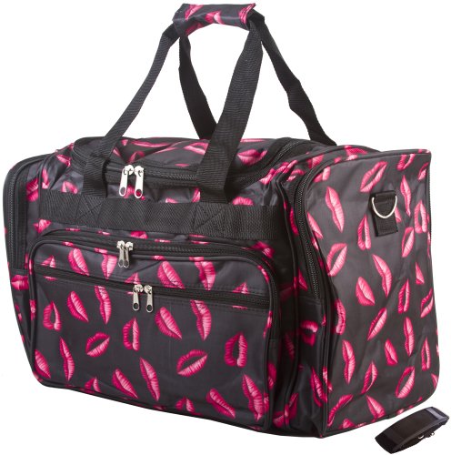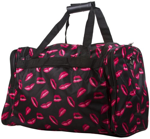 -. Brand : World Traveler -. Color : Pink -. Department : womens -. Feature : Adjustable, detachable non-slip padded shoulder strap / U-top opening provides easy access to roomy zipper secured main compartment / Metal feet allows stabiity to bag when setting down and provides bag floor not to touch floor directly to get dirty / Front exterior zip pocket with two exterior end zip pockets / Silver pewter hardware -. NumberOfItems : 1 -. PackageQuantity : 1 -. ProductGroup : Apparel -. ProductTypeName : LAGE -. Title : World Traveler Pink Lips Travel Duffle Bag