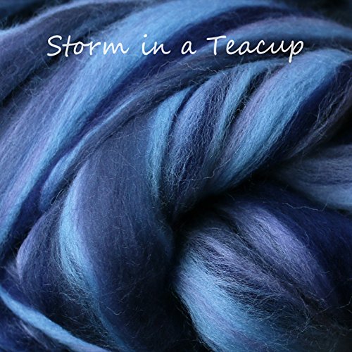 SPINNING FELTING Super Soft Merino Wool Fiber. Colorful Combed Top Roving for hand spinning, needle felting, wet felting, soap making and dryer balls. Storm in a Teacup