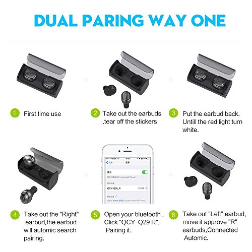 DUAL MODE: The headset contains two pieces which can be used separately by you and someone you want to share it with, meaning you can share the same.For stereo mode, please follow the pairing instructions in Description. KIND NOTICE: QCY Q29 Bluetooth headphones suit for indoor relaxing, NOT RECOMMERND FOR SPORT using.