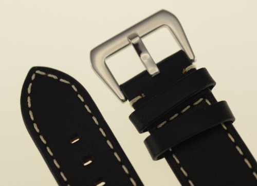 - Title : 24mm Width Panerai Style Leather Watch Band Original Style stainless Steel Buckle Black Color Watchband - by JP Leatherworks