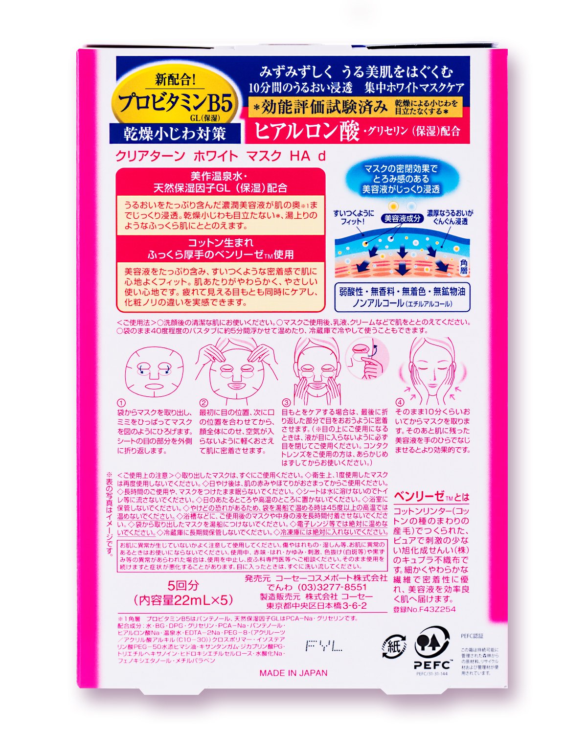 Kose Clearturn White Hyaluronic Acid Paper Facial Mask---5 Piece