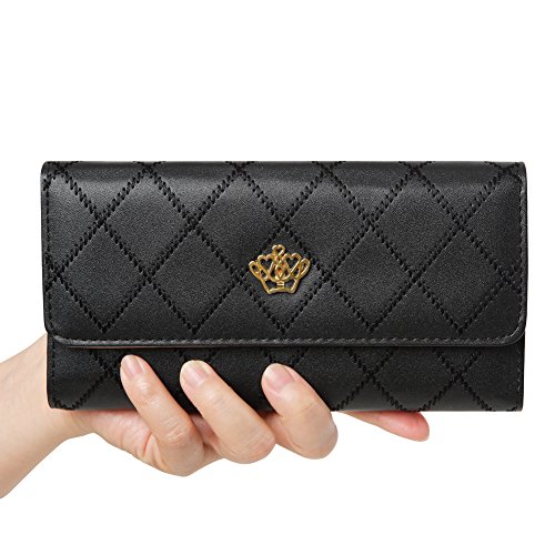 -. Title : ALALEI Womens Leather Clutch Crown Wallet Long Trifold Organizer Wallet Credit Card