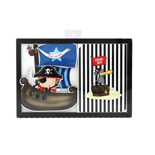 Paper Eskimo Poppit Birthday Party Invitations and Thank You Cards, Pirate Ahoy, Set of 12