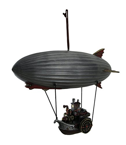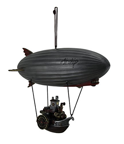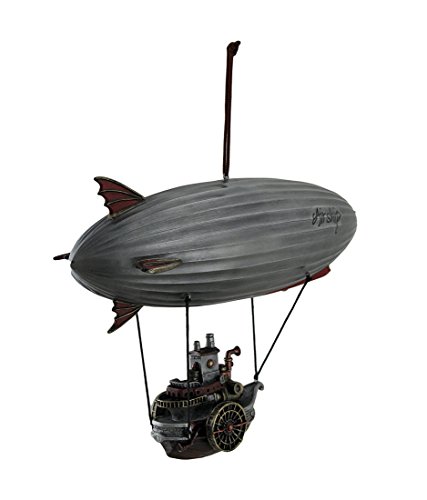 Resin Statues Full Steam Ahead Steamship Gondola Hanging Steampunk Airship Statue 10.5 X 8 X 4 Inches Gray