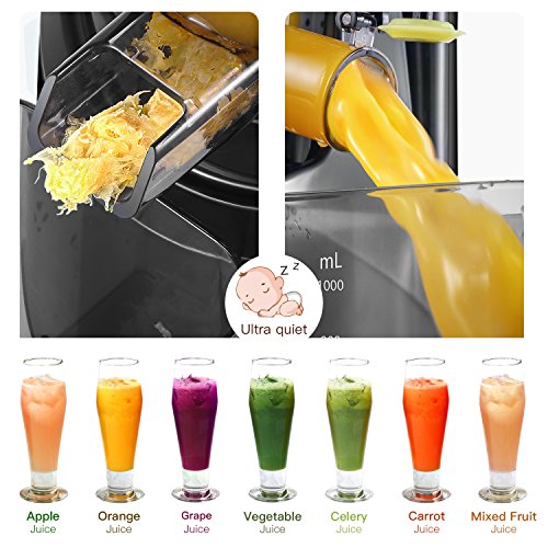 ✔HIGH JUICE YIELD WITH LITTLE OXIDATION: Comparing it against other juicers, The Natalie Styx Slow Juicer produces more yield of juice than centrifugal ones and the quality of the juice is much more nutritious, tastes better and fresher. It's so quiet that your family isn't disturbed by loudness anymore. High juice yield (Orange 85-90%, Pear 78-83%, Apple 65-75%, Celery 65-70%, Carrot 42-47%), with less nutrients lost.